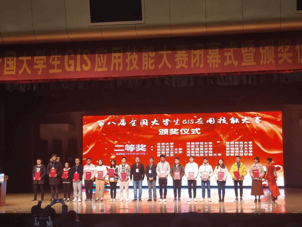 11月24日由中国地理信息产业协会、教育部地理科学类教学指导委员会、中国地理学会主办的第八届全国大学生GIS应用技能大赛在安徽师范大学举行。新葡萄AMG官方网站贾伟老师指导蔡建军、张峻豪、曾琪铖、黄甫觉同学经过紧张激烈的竞争角逐,最终与北京大学、南京大学等著名高校同获得技能大赛二等奖的佳绩。