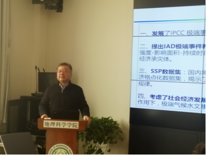 在学术交流前,杨登兴向姜彤院长一行的到来表示热烈欢迎。姜彤院长首先介绍了南京信息工程大学的发展历程;接着详细介绍了南京信息工程大学新葡萄8883官网AMG的历史沿革、专业学科、师资队伍、科研水平、学科及教学平台、合作交流等。随后姜彤院长作了题为“极端气候水文事件对社会经济影响的风险研究理论、方法和实践”、赵林教授作了题为“青藏高原的冻士研究”的学术报告。学院师生就姜彤教授和赵林教授的精彩报告展开了热烈的讨论。