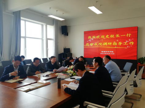 4月14日上午,史培军校长在党办、人事处、教务处、学工处负责人陪同下,到新葡萄8883官网AMG就党史学习教育及“十四五”规划落实情况进行专题调研。学院领导,教师、学生代表参加了调研会,院长葛岳静教授远程参加了工作汇报。