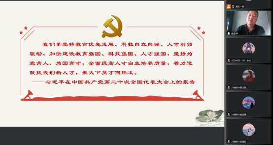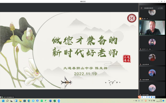 教师的信仰,教育的希望。为进一步优化师范生培养环节,践行学校“德育为先,能力为重”的发展理念,丰富“卓越教师项目”师德教育的内涵与形式,并推进2022年师范生在线教育见习活动,新葡萄8883官网AMG邀请大通县朔山中学陈生祥校长,于11月19日上午做了题为“做德才兼备的新时代好老师”的在线讲座。讲座由地理科学系主任陈宗颜老师主持,教育见习指导老师和地理科学专业21级、20级100余名学生参加了此次讲座。