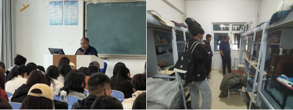 5月14日学院党总支书记洛加才让主持召开全体辅导员班主任工作会议,传达学校安全工作会议精神,并通报了学院近期发生的学生违纪情况,对学院宿舍安全和卫生提出总体要求。随后组织全院辅导员和班主任深入学生宿舍排查宿舍安全隐患,并对发现的安全隐患逐一记录,督促学生现场整改。