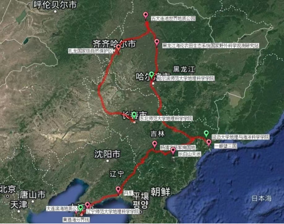 地理学跨区域联合野外实习是国家理科地理学基础人才培养和野外实践教学改革的创新模式,对于培养研究型本科生具有重要的意义。此次联合实习在吉林省、黑龙江省和辽宁省多地进行,以长春市为起点,途径白城、齐齐哈尔、哈尔滨、延吉、丹东、大连等地,行程约3500公里。