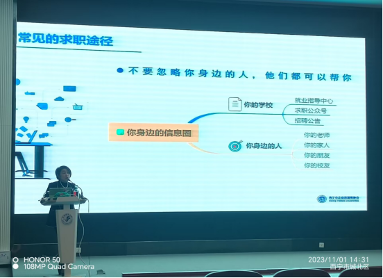 主讲人赵妍老师分别从获取求职的一般途径、简历的制作等内容,让同学们明白了掌握有效的求职途径能够大幅降低就业的难度,让同学们赢在起跑线上。同时也鼓励大家在制作简历时能够做到规范化、标准化,减少了因简历制作失误而错失就业良机的遗憾。