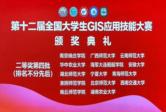 2023年12月2日,由中国地理信息产业协会、中国地理学会主办的第十二届全国大学生GIS应用技能大赛在广州大学举行。由新葡萄教师贾伟和马玉军指导的冯元宝、胡湘煜、肖玉蕾、周少妮小组,在经过紧张激烈的角逐后,喜获大赛二等奖。