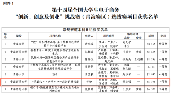6月29日,由青海省教育厅主办、青海大学承办的第十四届全国大学生电子商务“创新、创意及创业”挑战赛青海赛区选拔赛在青海大学落下帷幕。新葡萄报送的“‘一见青心’——大学生户外旅游的开拓者”项目斩获一等奖。