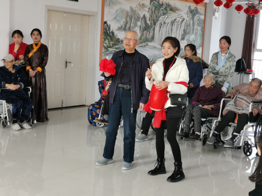 活动起初志愿者和老人们还有些拘束,但随着活动的进行,气氛开始活跃起来,同学们和老人们有了更多的沟通与交流,一起唱歌、跳锅庄舞、玩游戏、互相谈心,画面其乐融融。活动结束时,老人们依依不舍拉着志愿者们的手久久不愿松开,但相聚总有离别,离别也是为了下次更好的相遇。